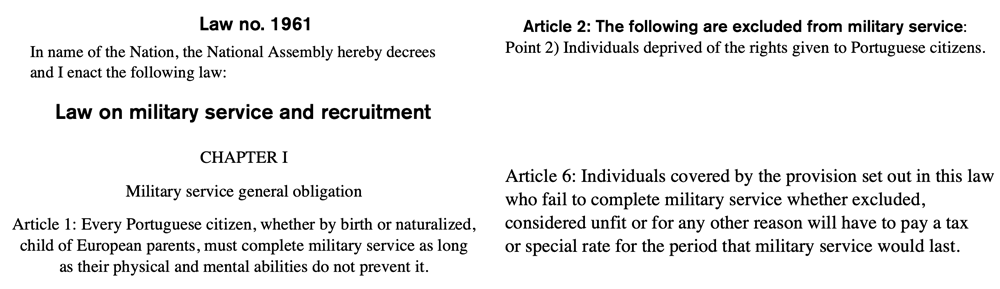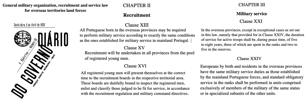 Law on recruitment and military service in Portuguese overseas provinces (1953)